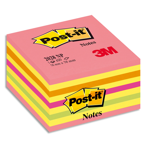 Pergamy bloc de 100 feuilles repositionnables dimensions 7,6x7,6cm. coloris assortis néon