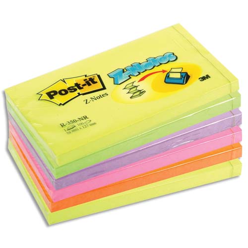 Post-it lot de 6 recharges z-notes 100 feuilles 7,6 x 12,7 cm coloris néon assortis