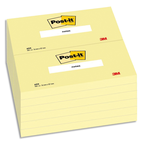 Post-it bloc repositionnable de 100 feuilles 76 x 127 mm jaune 655e