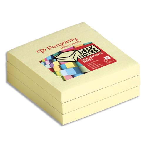 Pergamy bloc de 100 feuilles repositionnables dimensions 7,6x7,6cm. coloris jaune