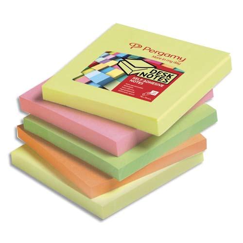 Pergamy bloc de 100 feuilles repositionnables dimensions 7,6x7,6cm. coloris assortis pastel