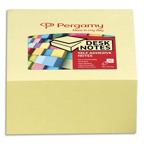 Pergamy bloc cube de 320 feuilles repositionnables dimensions 7,6x7,6cm. coloris jaune