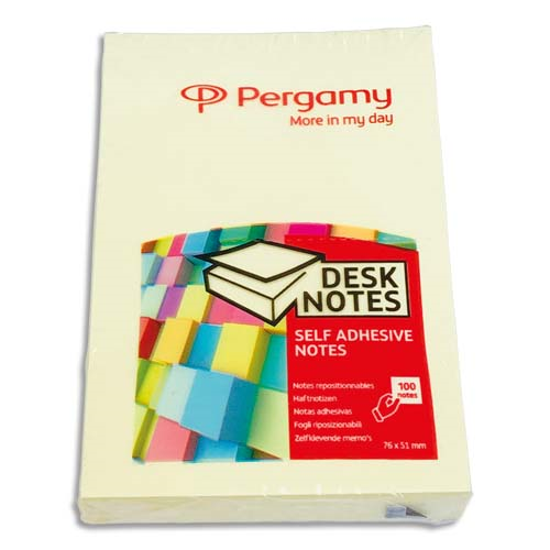 Pergamy bloc de 100 feuilles repositionnables dimensions 7,6x10,2cm. coloris jaune pastel.