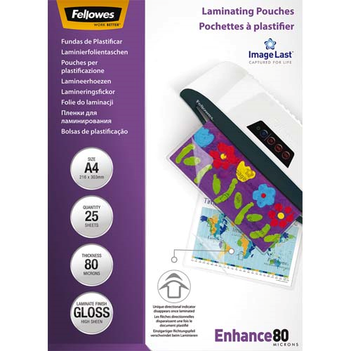 Fellowes boîtes de 25 pochettes de plastification format a4 80 microns 53962