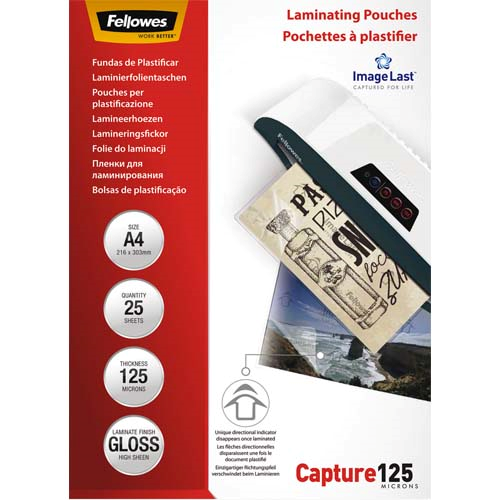 Fellowes boîtes de 25 pochettes de plasitification format a4 125 microns 5396301