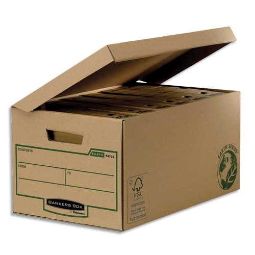 Bankers box conteneur earth series à ouverture sur le dessus, montage manuel, carton recyclé kraft brun