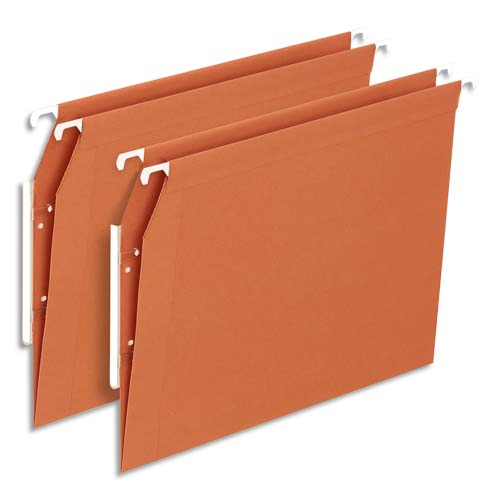 Boîte de 25 dossiers suspendus armoire en kraft 210g. fond v, volet agrafage. orange.