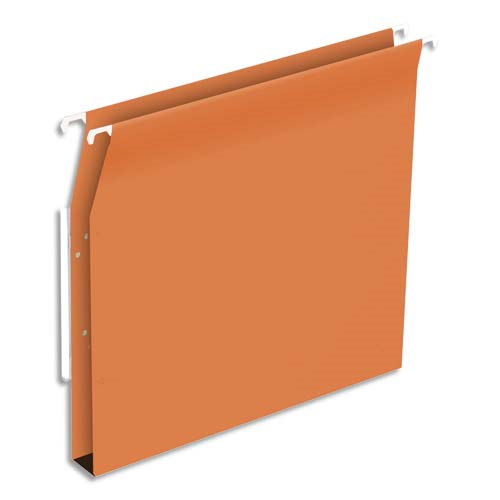 Oblique az boîte de 25 dossiers suspendus tiroir en kraft 240g. fond v, bouton-pression. orange