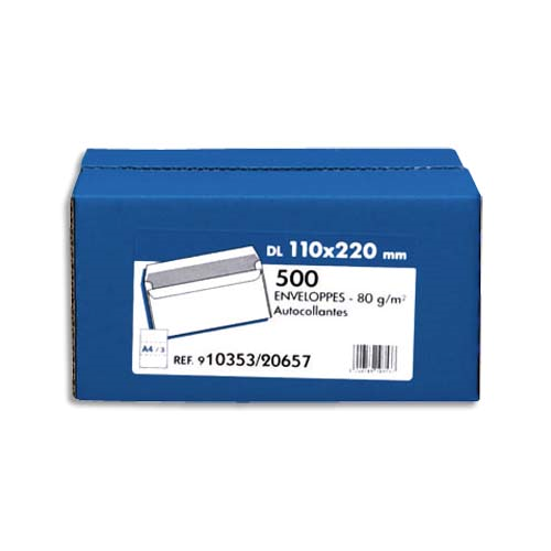 Boîte de 500 enveloppes blanches 80g dl 110x220 mm autocollantes