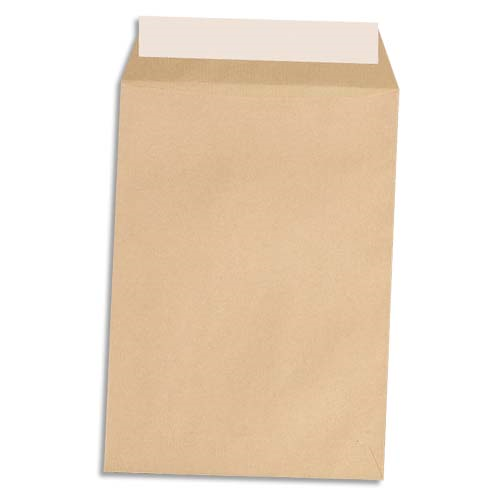 Boîte de 250 pochettes kraft brun auto-adhésives 90g format 229x324 mm c4