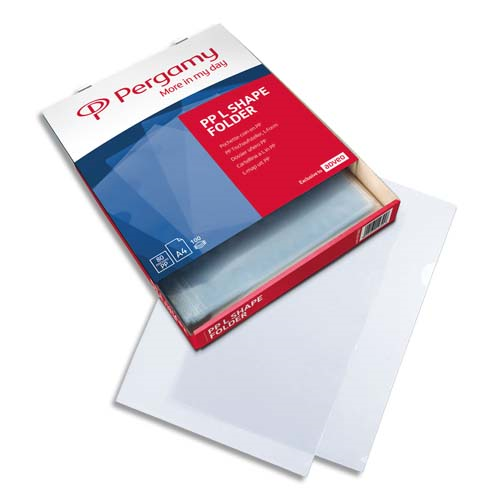 Pergamy boîte 100 pochettes coin polypropylène grainé 14/100ème format a4. coloris incolore
