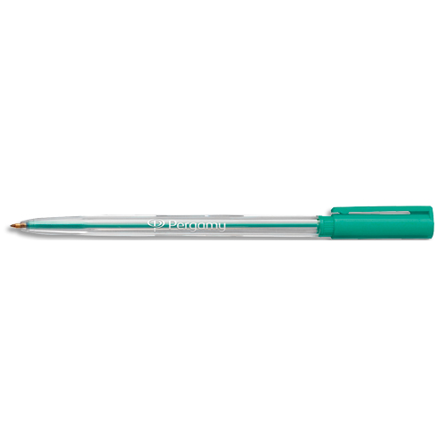 Stylo à bille pointe moyenne encre verte corps plastique cristal avec capuchon