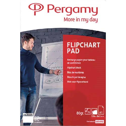 Pergamy recharge papier pour chevalets, rouleau de 50 feuilles 70g blanches unies, format l65 x h98 cm