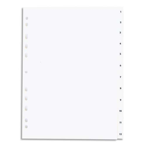 Pergamy jeu 12 intercalaires numériques 1-12 polypropylène format a4. coloris blanc