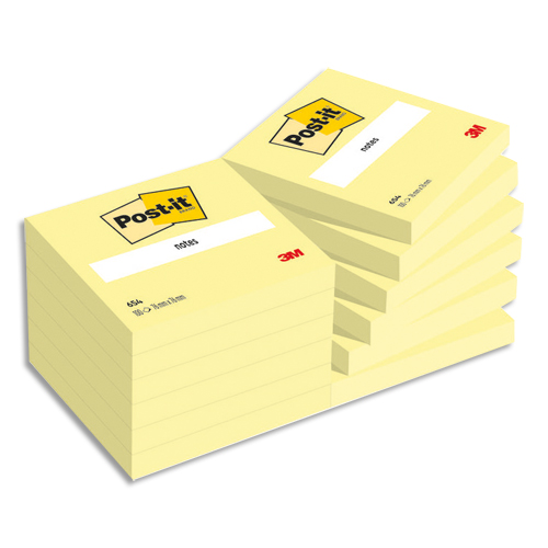 Calipage lot de 12 blocs repositionnables 100 feuilles jaunes 38x51mm