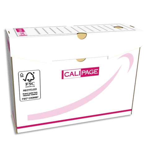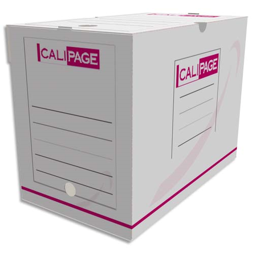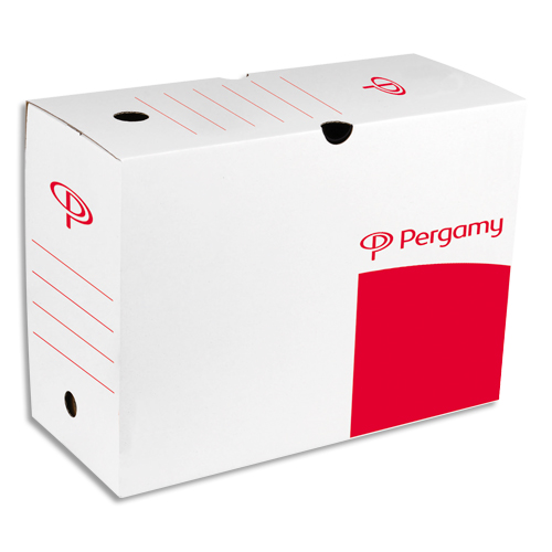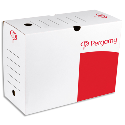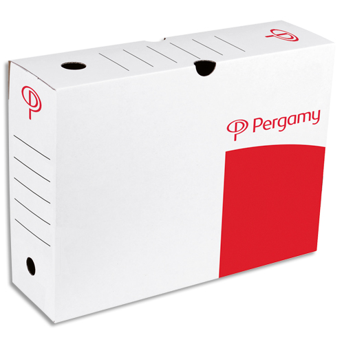 Pergamy boîte archive dos 10 cm. montage automatique. kraft ondulé. blanc imprimé rouge