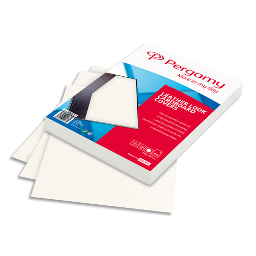 Pergamy boîte de 100 plats de couverture grain cuir a4 250gr blanc 900039