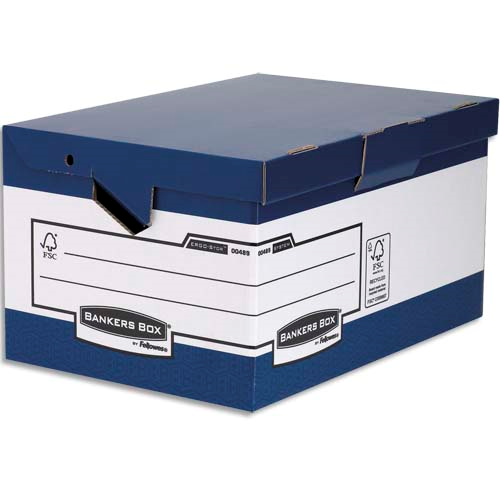 Bankers box conteneur maxi heavy duty. montage automatique. carton blanc/bleu.