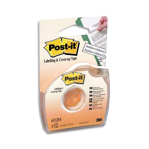 Post-it bande de correction adhésive et repositionnable sur dévidoir plastique jetable 8,4 mm x 17,7 m