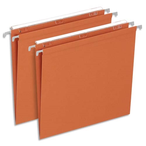 Boîte de 25 dossiers suspendus armoire en kraft 210g. fond v, volet agrafage. orange.