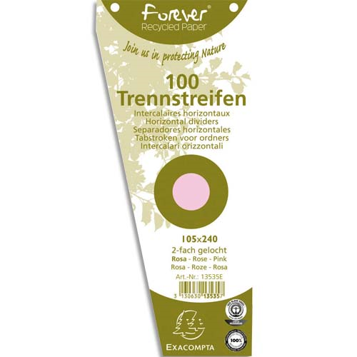 Exacompta paquet de 100 intercalaires trapèze rose. perforation 2 trous