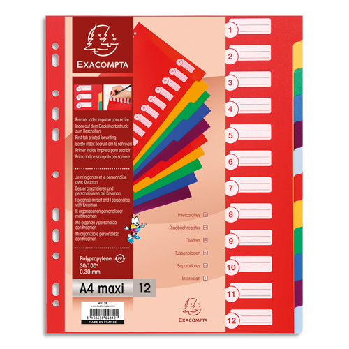 Exacompta jeu de 12 intercalaires polypro 3.5/10è format maxi a4+