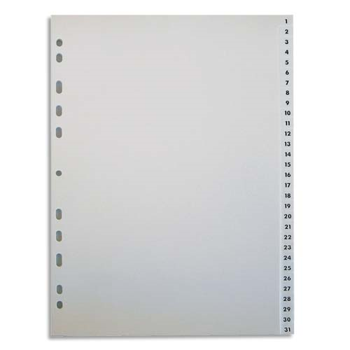 Pergamy jeu 31 intercalaires numériques 1-31 polypropylène format a4+. coloris blanc