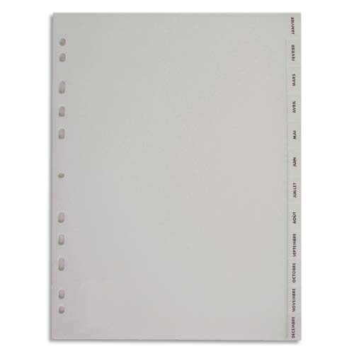 Pergamy jeu 12 intercalaires mensuels janvier-décembre polypropylène format a4+. coloris blanc