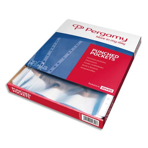 Pergamy boîte 100 pochettes perforées polypropylène lisse 12/100ème format a4. coloris incolore