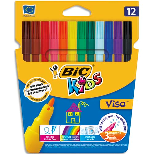 Bic kids visa feutres de coloriage à pointe fine - couleurs assorties, etui carton de 12