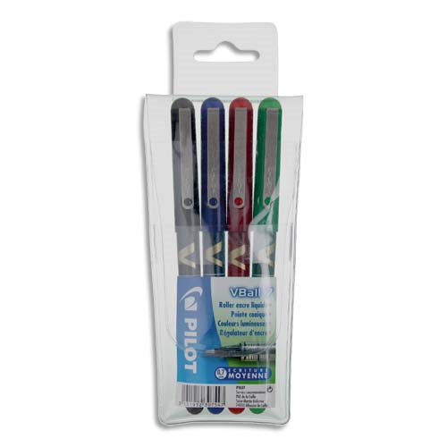 Pilot pochette de 4 stylos feutre à bille pointe métal 4 couleurs d'encre v-ball 07
